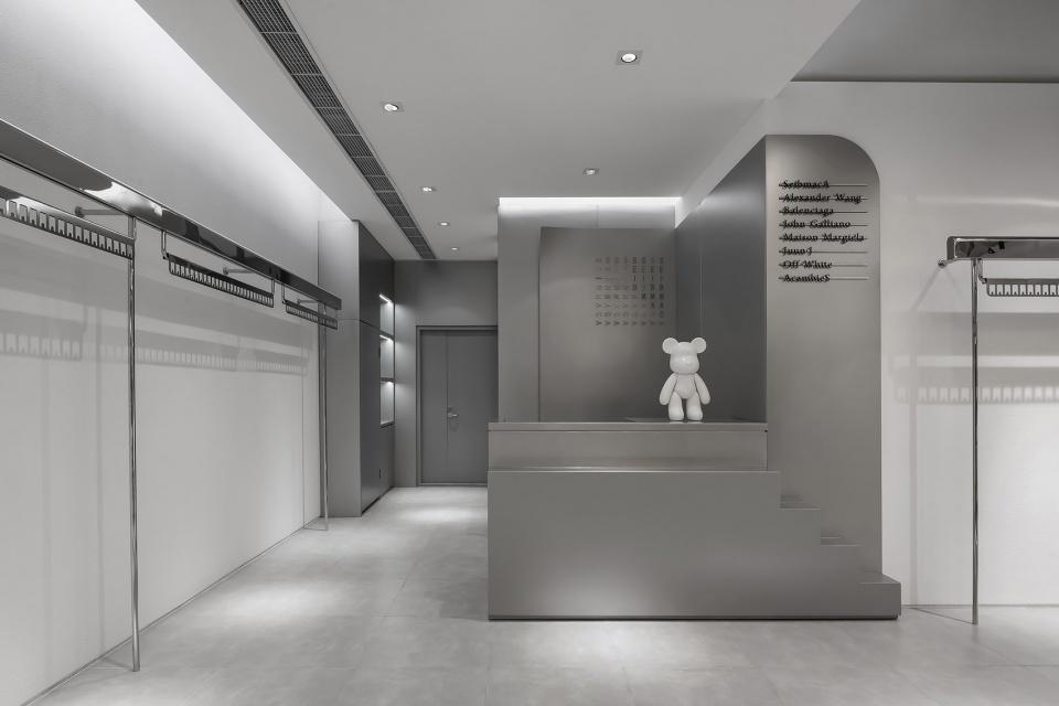 我們擯棄了多余的空間裝飾和軟裝搭配,使服裝和空間在這里相互補(bǔ)充,